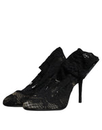 Dolce & Gabbana Black Lace Stretch Heels Mid Calf Boots Shoes