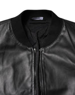 Dolce & Gabbana Black Lambskin Leather Full Zip Biker Jacket