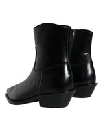 Dolce & Gabbana Black Leather Ankle Boots Booties Shoes