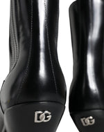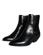 Dolce & Gabbana Black Leather Ankle Boots Booties Shoes