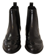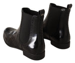 Dolce & Gabbana Black Leather Ankle High Flat Boots Shoes