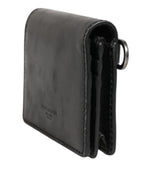 Dolce & Gabbana Black Leather Bifold Card Holder Mens Coin Purse Key Clip Wallet