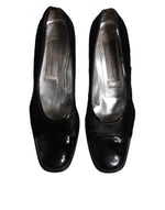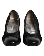 Dolce & Gabbana Black Leather Block Heels Pumps Shoes
