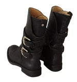 Dolce & Gabbana Black Leather Buckle Mid Calf Boots Shoes