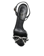 Dolce & Gabbana Black Leather Crystal Bow Heels Sandals Shoes