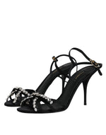 Dolce & Gabbana Black Leather Crystal Bow KEIRA Sandals Shoes