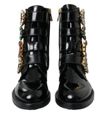 Dolce & Gabbana Black Leather Crystal Buckles Boots Shoes