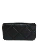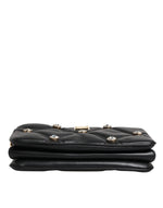 Dolce & Gabbana Black Leather Crystal Embellished Logo Shoulder Bag