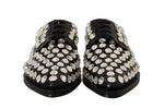 Dolce & Gabbana Black Leather Crystals Lace Up Formal Shoes