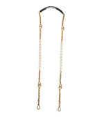 Gorgeous brand new, 100% Authentic Dolce & Gabbana shoulder strap. Crafted in Italy, this piece combines black leather, gold-tone chain links, and oversized pearl accents, complete with the iconic DG logo charm. A luxurious accessory to elevate any bag.