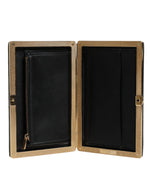 Dolce & Gabbana Black Leather Gold Frame Clutch Evening Party Purse Bag