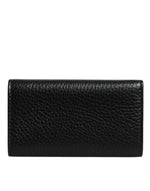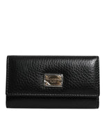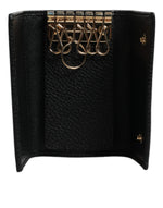 Dolce & Gabbana Black Leather Gold Metal Logo Plaque Trifold Keyring