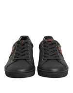 Dolce & Gabbana Black Leather Heart Embellished Sneakers Shoes