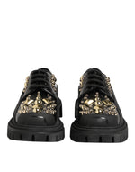 Dolce & Gabbana Black Leather Jeweled Crystals Derby Shoes