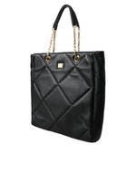 Dolce & Gabbana Black Leather JUNGLE Quilted Shopping Tote Bag