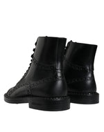 Dolce & Gabbana Black Leather Lace Up Mid Calf Boots Shoes