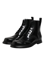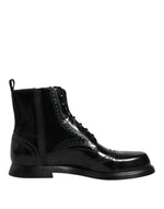 Dolce & Gabbana Black Leather Lace Up Mid Calf Boots Shoes