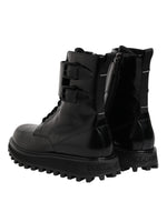 Dolce & Gabbana Black Leather Lace Up Mid Calf Boots Shoes