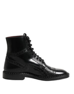 Dolce & Gabbana Black Leather Lace Up Mid Calf Boots Shoes