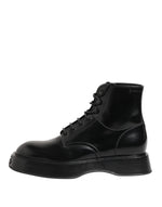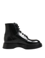 Dolce & Gabbana Black Leather Logo Ankle Boots Lace Up Shoes