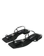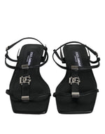 Dolce & Gabbana Black Leather Logo Ankle Strap Keira Sandals Shoes