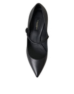 Dolce & Gabbana Black Leather Logo Heels Mary Janes Pumps Shoes
