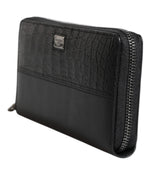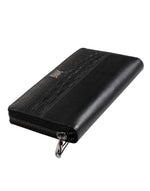 Dolce & Gabbana Black Leather Logo Plaque Zip Around Continental Wallet