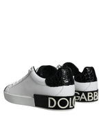 Dolce & Gabbana Black Leather Logo Portofino Sneaker Shoes