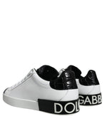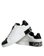 Dolce & Gabbana Black Leather Logo Portofino Sneaker Shoes