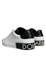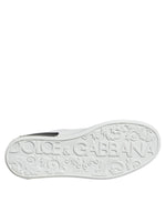 Dolce & Gabbana Black Leather Logo Portofino Sneaker Shoes