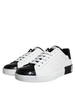 Dolce & Gabbana Black Leather Logo Portofino Sneaker Shoes