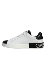 Dolce & Gabbana Black Leather Logo Portofino Sneaker Shoes