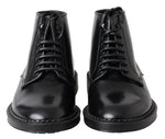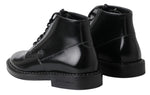 Dolce & Gabbana Black Leather Men Short Boots Lace Up Shoes
