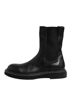 Dolce & Gabbana Black Leather Mid Calf Boots Flats Shoes