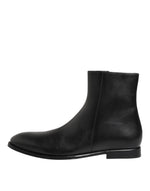 Dolce & Gabbana Black Leather Mid Calf Men Boots Shoes