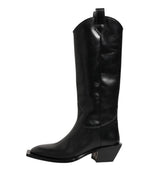 Dolce & Gabbana Black Leather Over The Calf Biker Boots Shoes