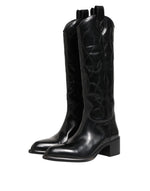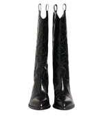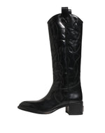Dolce & Gabbana Black Leather Over The Calf Biker Boots Shoes