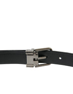 Dolce & Gabbana Black Leather Silver Metal Buckle Belt