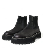 Dolce & Gabbana Black Leather Slip On Stretch Chelsea Boots Shoes