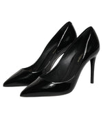 pumps are crafted from premium black leather, exuding timeless sophistication and Italian craftsmanship. Designed with a classic pointed toe and sleek stiletto heel, they enhance a refined silhouette perfect for any formal or evening occasion. A versatile and elegant addition to your luxury footwear collection.