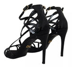 Dolce & Gabbana Black Leather Stiletto Heels Sandals Shoes