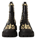 Dolce & Gabbana Black Leather Studded Combat Boots