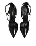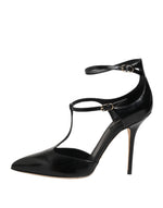 Dolce & Gabbana Black Leather T-STRAPS Heels Sandals Shoes