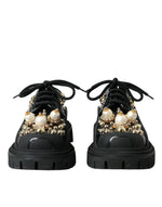 Dolce & Gabbana Black Leather Trekking Derby Embellished Shoes