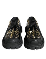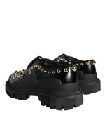 Dolce & Gabbana Black Leather Trekking Derby Embellished Shoes