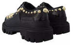 Dolce & Gabbana Black Leather Trekking Derby Embellished Shoes