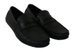 Dolce & Gabbana Black Lizard Leather Flat Loafers Shoes