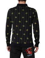 Dolce & Gabbana Black Logo Jacquard Knitted Polo Shirt T-shirt