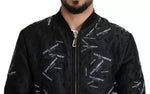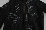 Dolce & Gabbana Black Logo Patch Brocade Bomber Full Zip Jacket