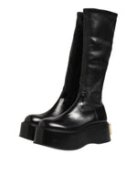 Dolce & Gabbana Black Logo Plaque Over The Calf Boots Shoes
